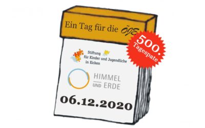 Gemeinsam mit der "Stiftung für Kinder und Jugendliche in Eicken" hat sich "Himmel und Erde" den Nikolaustag 2020 gesichert und damit die 500. Tagespatenschaft bei der "Ökumenischen Jugendarbeit in Eicken e.V. (ÖJE) übernommen. Wir wünschen der ÖJE für die Zukunft...